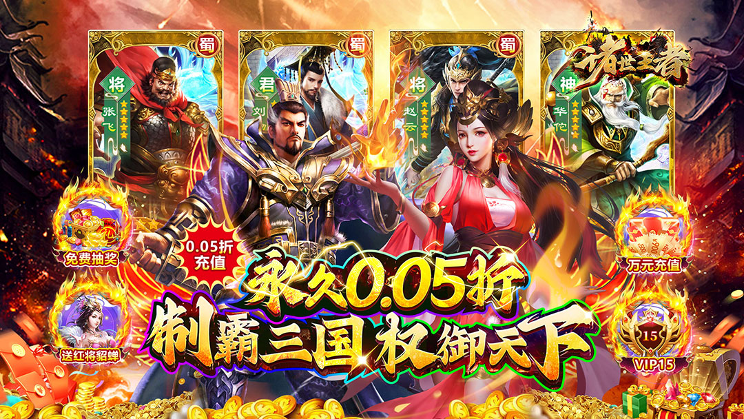 ★游戏充值永久0.05折,每日上线送1000金票(可购买游戏当中的礼包) ★登录游戏送VIP15,极品红将貂蝉,银两1000W、元宝10W ★完成任务,免费抽奖,各种好礼等你来拿 ★升级送万充,最高可领取4万元红包,一日暴富不是梦。